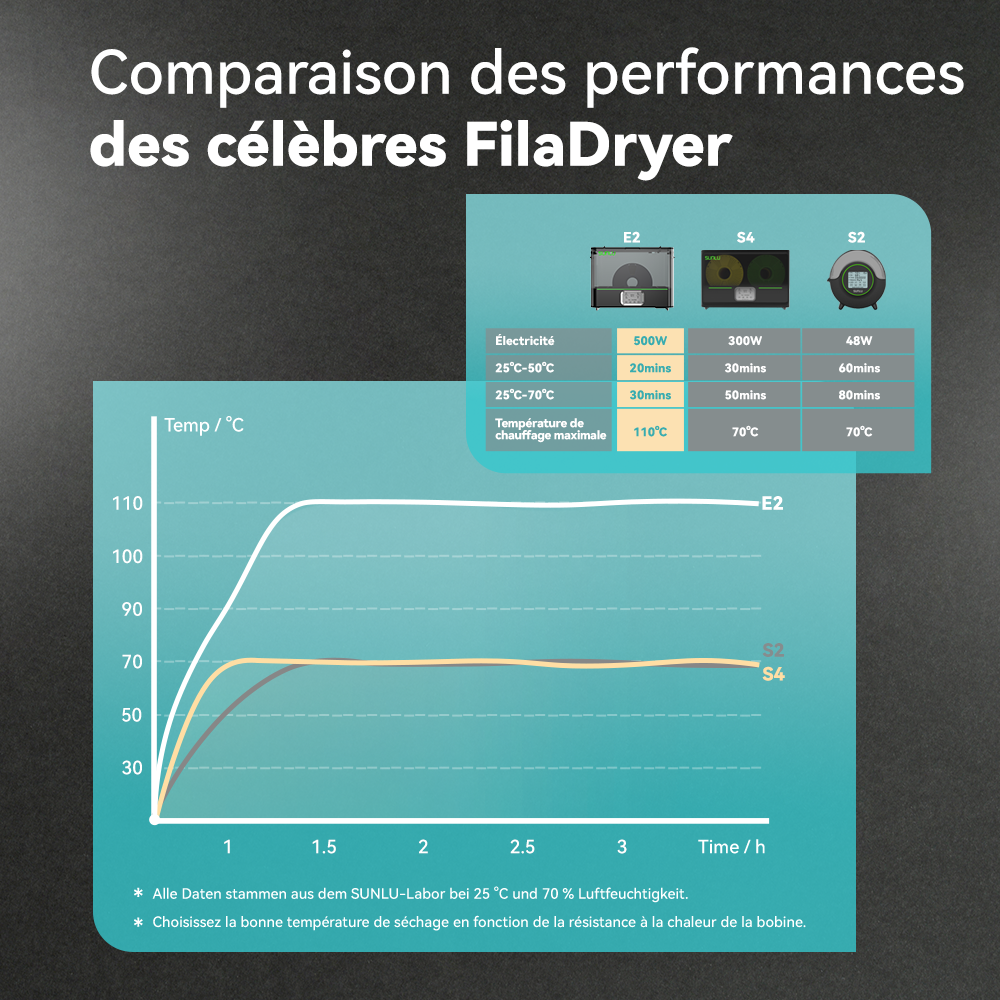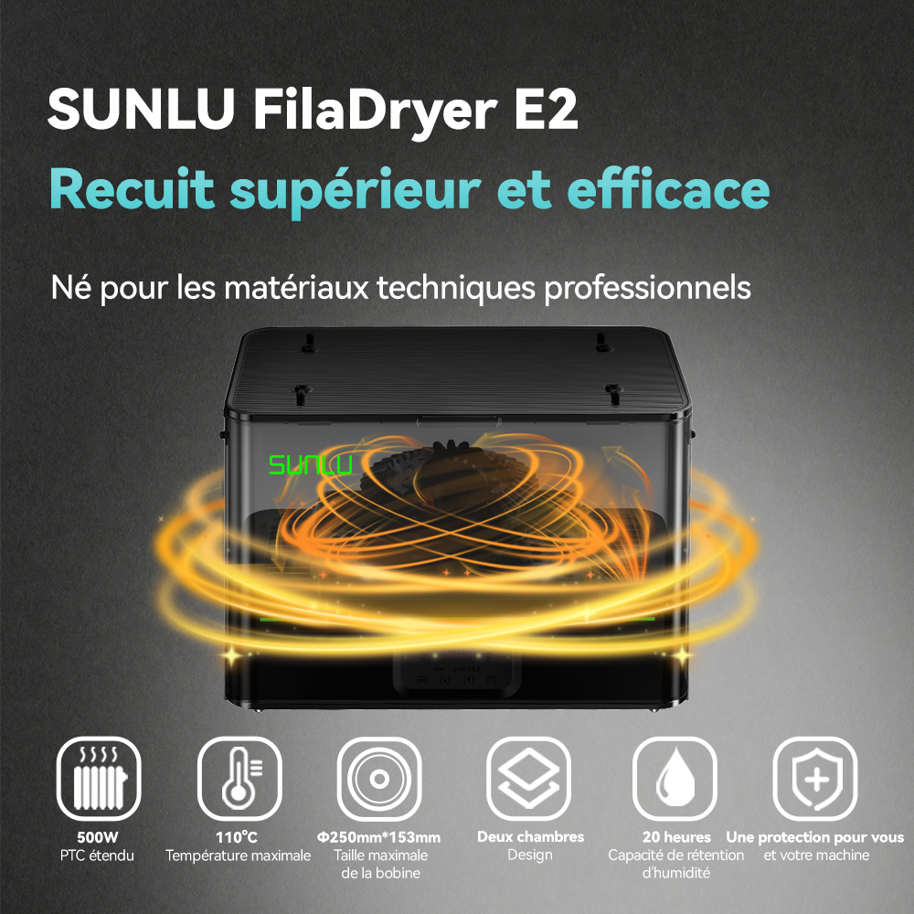 SUNLU FilaDryer E2, jusqu'à 110℃, séchage et recuit professionnels, conçu pour les filaments d'impression 3D destinés à l'ingénierie.