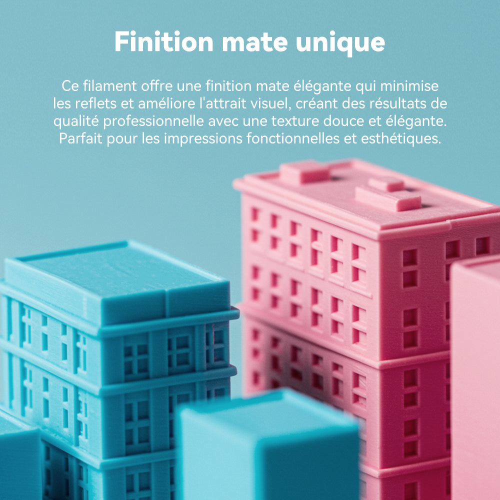Ce filament offre une finition mate élégante qui minimise les reflets et améliore l'attrait visuel, créant des résultats de qualité professionnelle avec une texture douce et élégante. Parfait pour les impressions fonctionnelles et esthétiques.