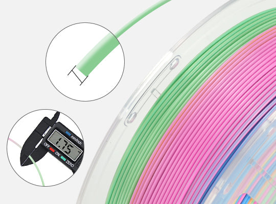 【Rainbow Filament 1.75 mm】– Fabriqué avec une tolérance de diamètre précise de 1,75 mm ±0,02 mm, garantissant une extrusion régulière, une alimentation stable et de bonnes performances d’impression.