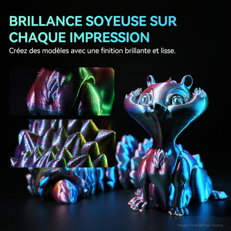 [Texture soyeuse, finition lisse] Le filament Silk 3D offre une texture soyeuse et lisse avec des couleurs vives et accrocheuses. Sa surface éblouissante ne nécessite aucun polissage, ce qui fait que chaque création rayonne d'éclat artistique.