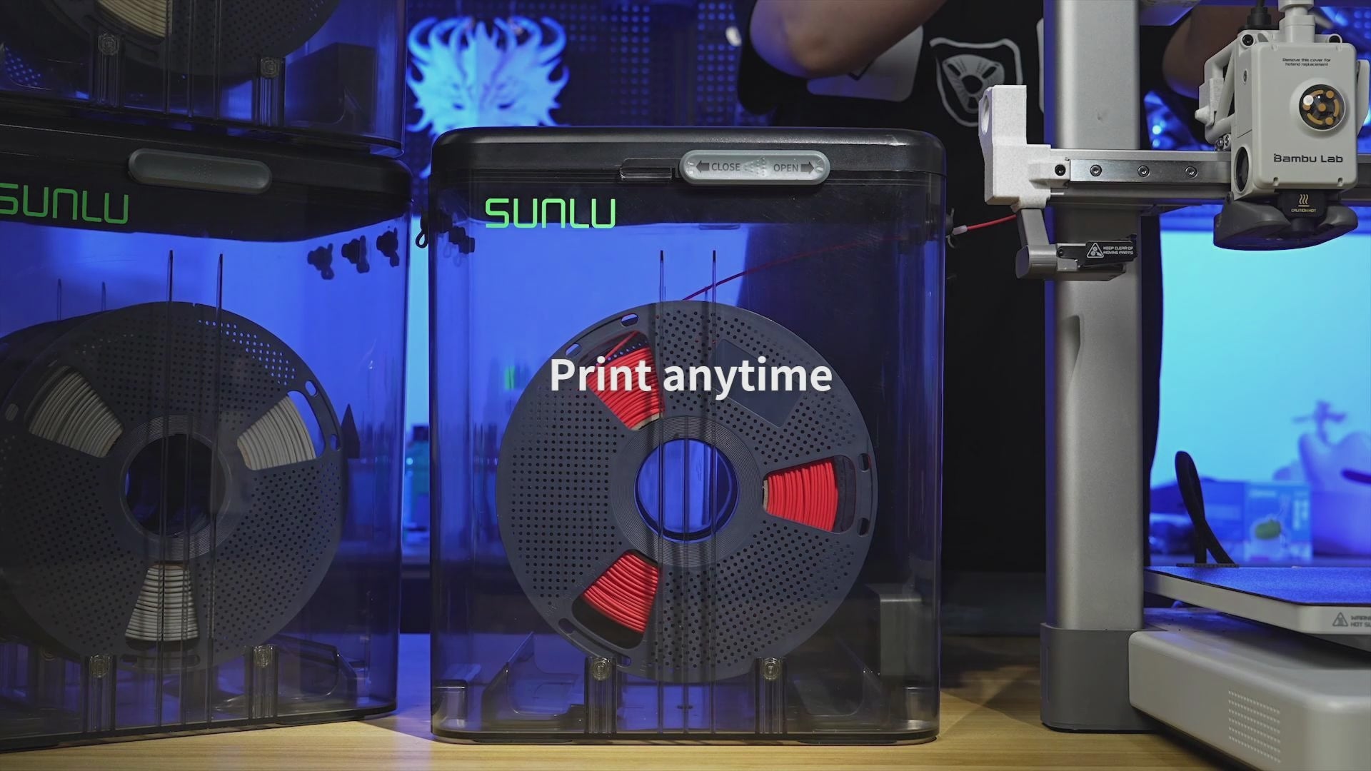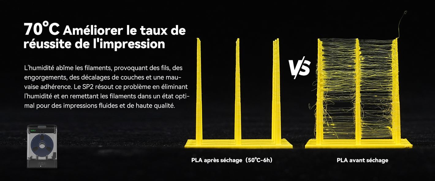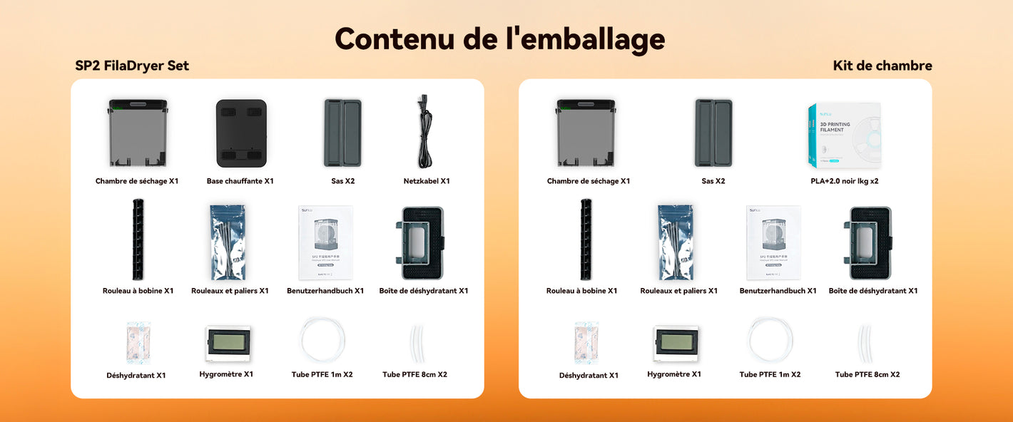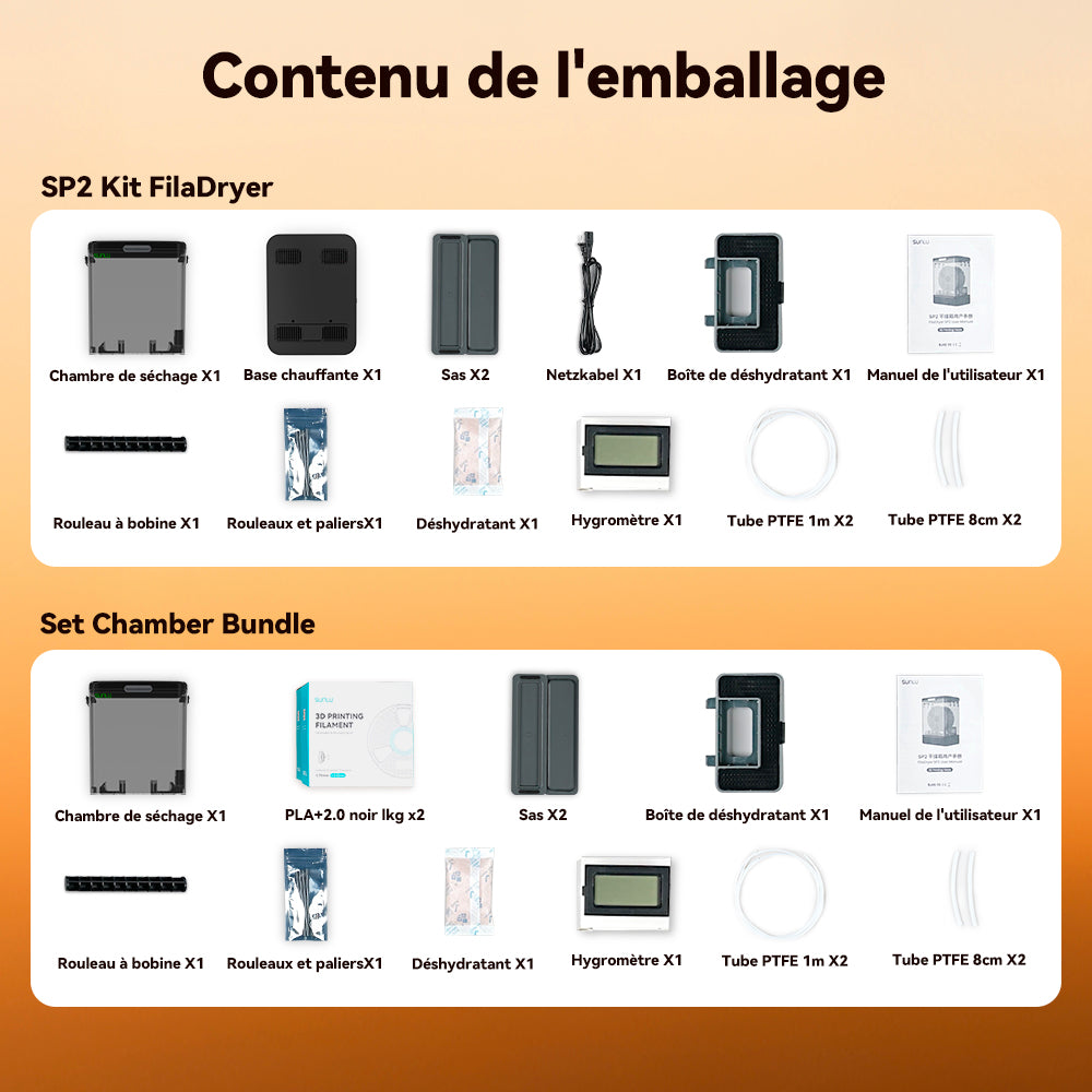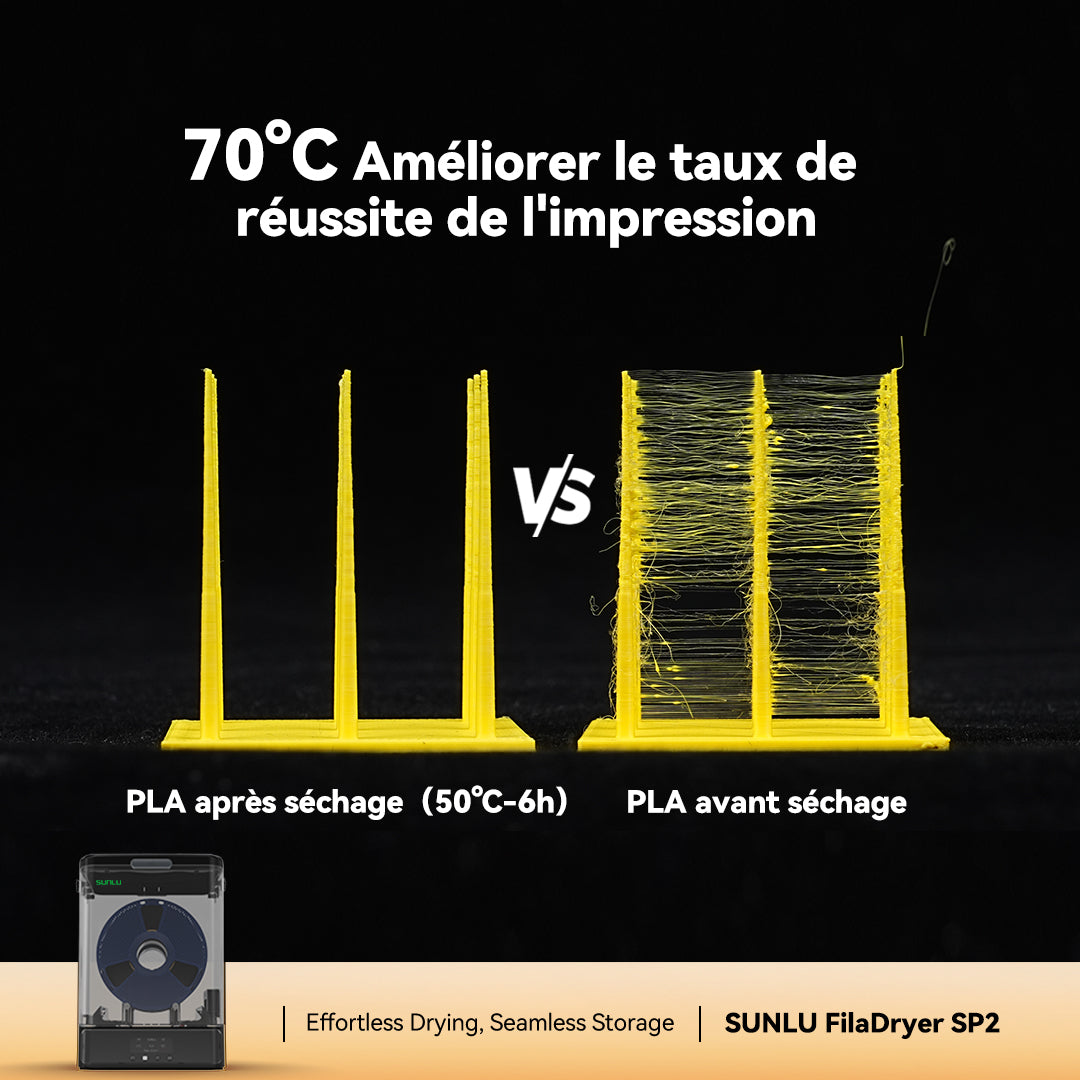 [Sécheur de filaments 2-en-1 et boîte de rangement] Existe-t-il un moyen de sécher et de ranger les filaments en même temps ? SUNLU FilaDryer SP2, avec une base chauffante efficace et une boîte de stockage, est conçu comme deux parties séparées. Plusieurs boîtes de stockage peuvent être utilisées comme boîtes de stockage peuvent être librement empilées (un maximum de 3 est recommandé) pour améliorer l'utilisation de l'espace.