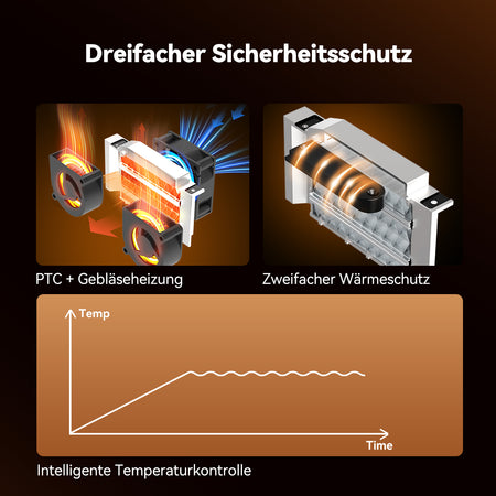 [Sécurité renforcée, utilisation sans stress] La triple sécurité du chauffage PTC 200W + ventilateur, l'interrupteur de protection de la température secondaire et le contrôle intelligent de la température du logiciel garantissent un processus de chauffage infaillible.