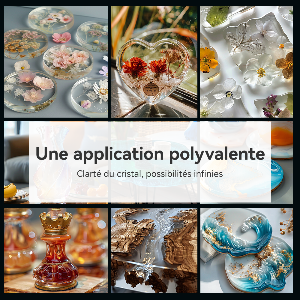 La résine époxy (résine AB) est un choix populaire pour divers projets d'artisanat et de bricolage en raison de sa polyvalence. De la fabrication de sous-verres et de porte-clés à la création de formes et d'ornements personnalisés, la résine peut être coulée dans différents moules pour donner vie à des idées créatives. Sa facilité d'utilisation et la belle finition durable qu'elle procure en font un produit de prédilection pour les amateurs comme pour les professionnels.