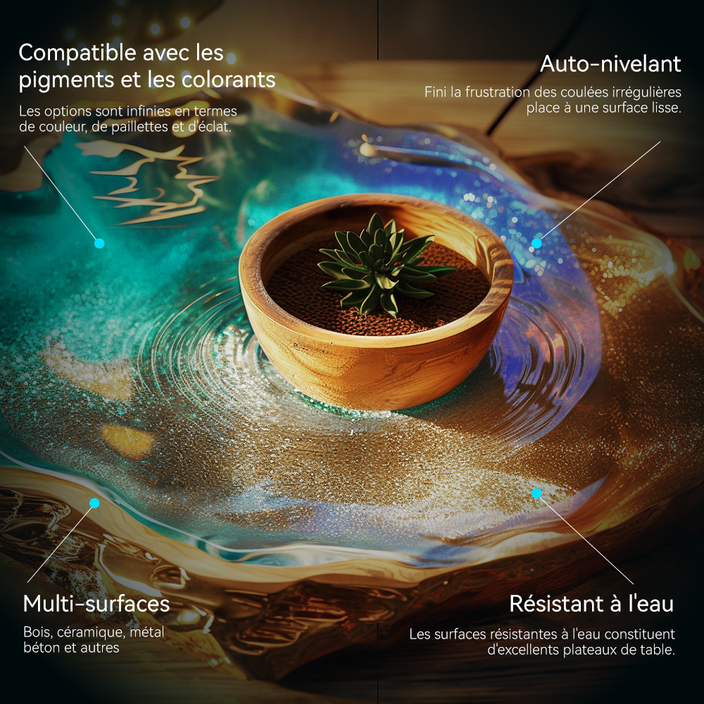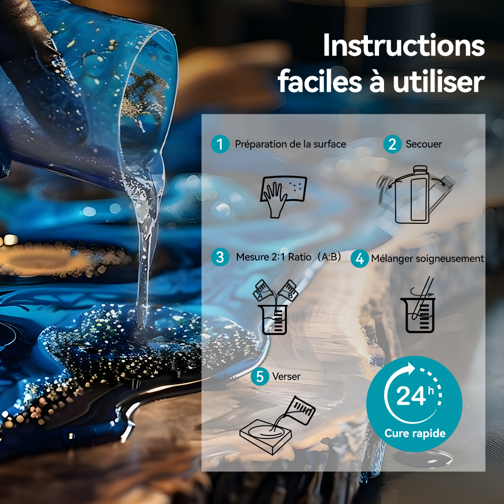 [RESINE EPOXYTIQUE HAUTE PERFORMANCE] La résine époxy cristalline confère aux projets une finition étonnante, semblable à celle du verre. Elle reste cristalline même lorsqu'elle est exposée à l'extérieur. Parfaite pour le moulage, le revêtement, l'art, les comptoirs, les bijoux, les peintures et les moules.