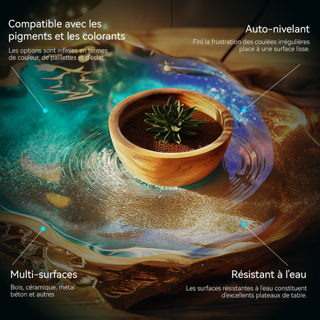 [RESINE EPOXY SANS BULLES] Il n'y a pas de bulles si l'on remue uniformément et lentement. La résine époxy autolissante a des propriétés auto-moussantes, assurant une excellente création. La résine époxy artisanale peut être utilisée avec de la poudre de mica, des pigments phosphorescents, des paillettes et des colorants pour créer des œuvres d'art intéressantes.