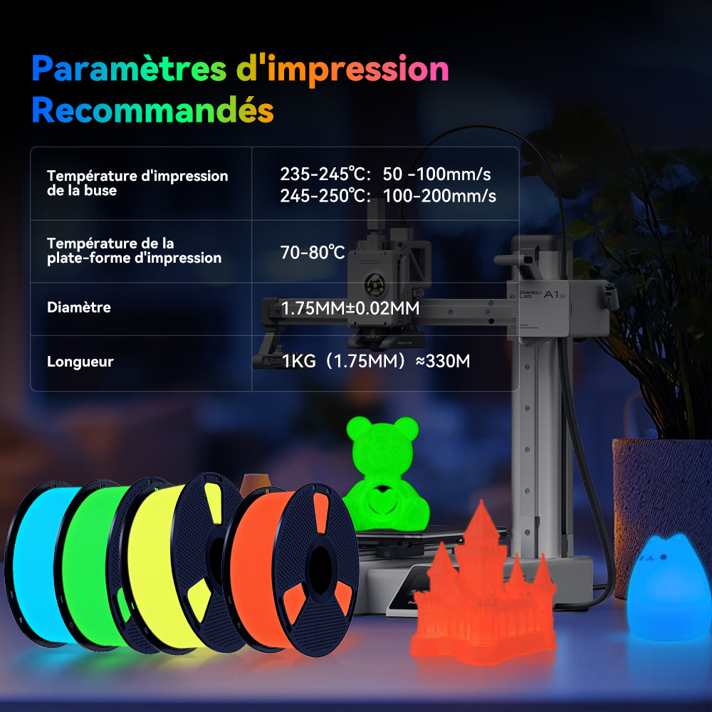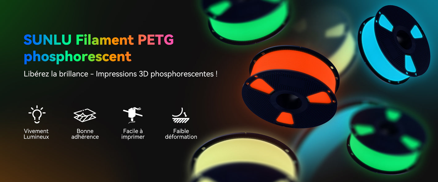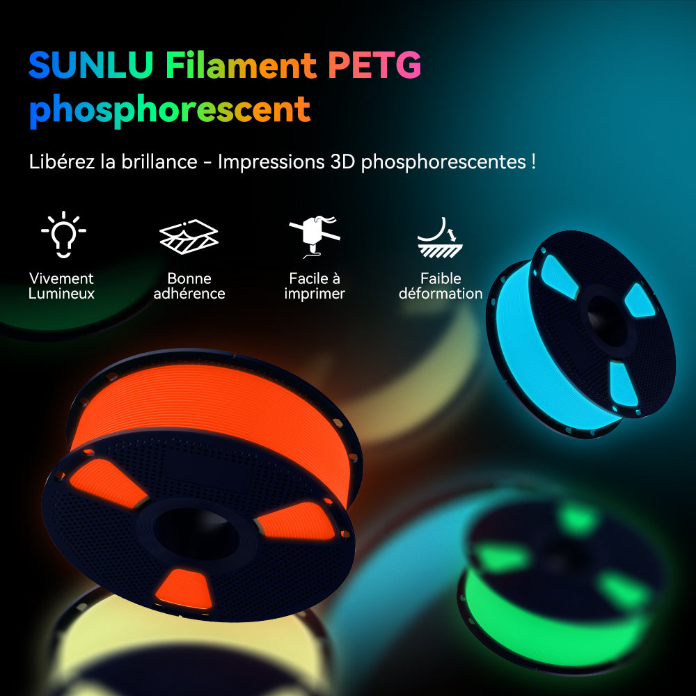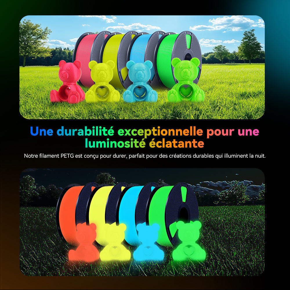 [MOQ : 3 Rouleaux] Filament PETG Lumineux (Phosphorescent) pour imprimante 3D 1KG