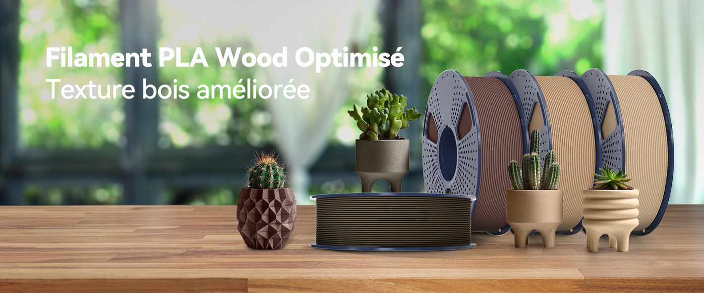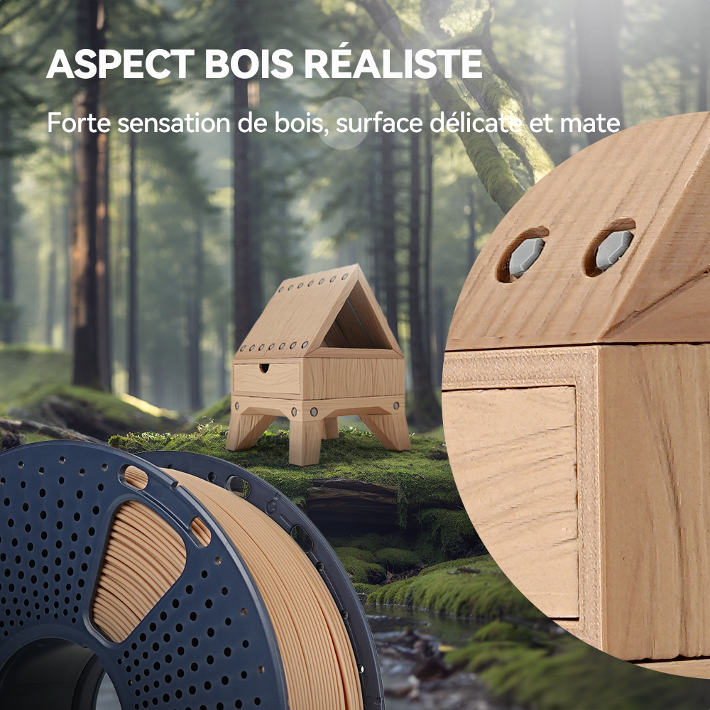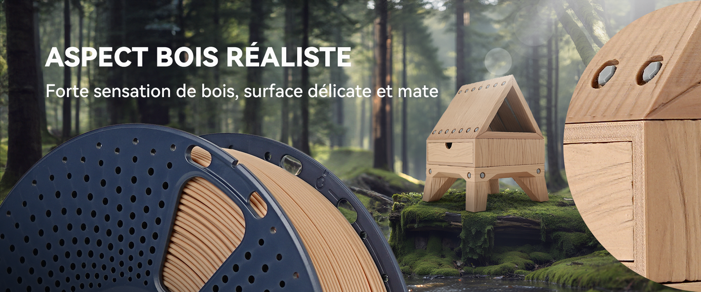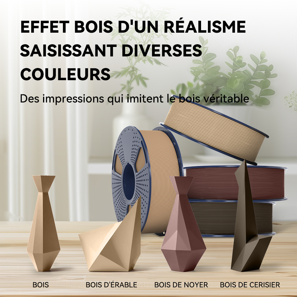 [Texture bois] Découvrez une texture boisée plus prononcée et une impression plus rapide avec le filament PLA bois amélioré.