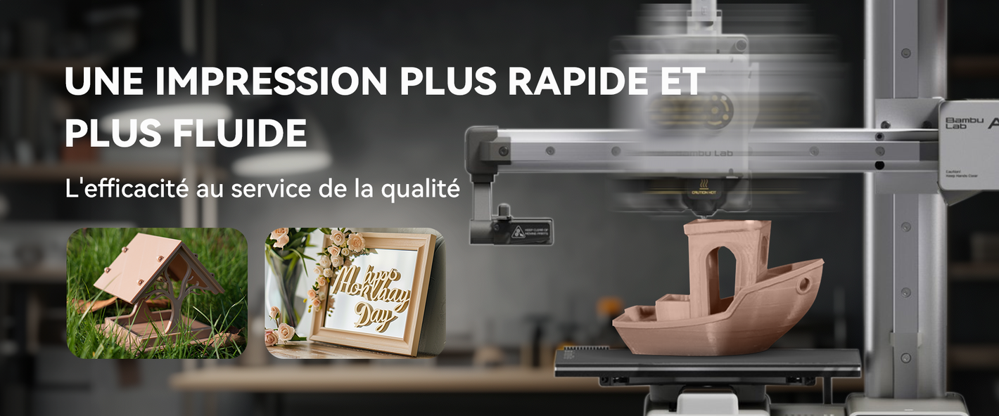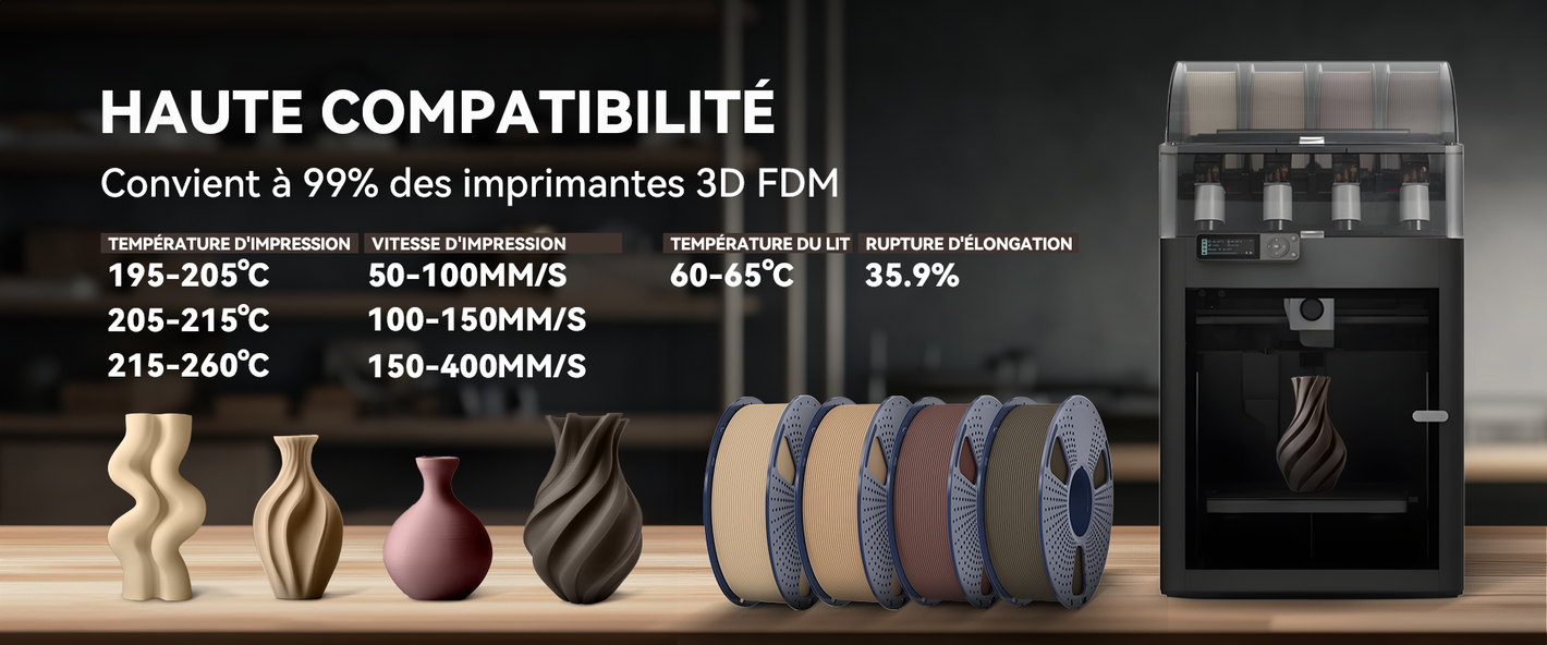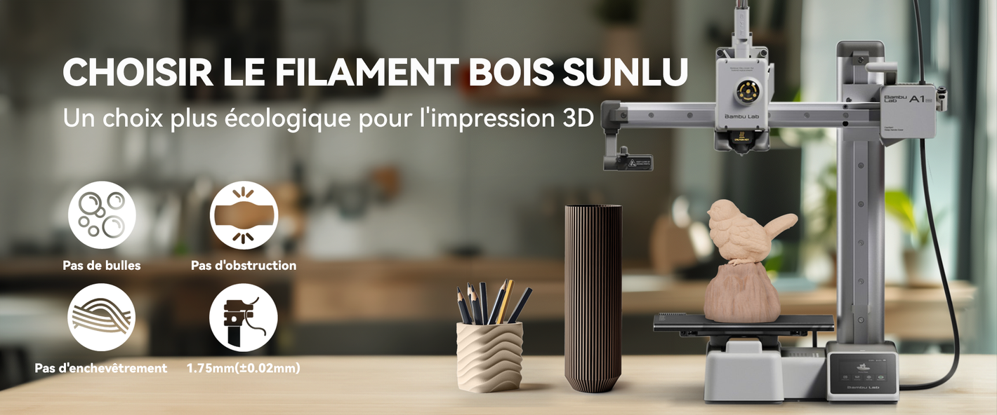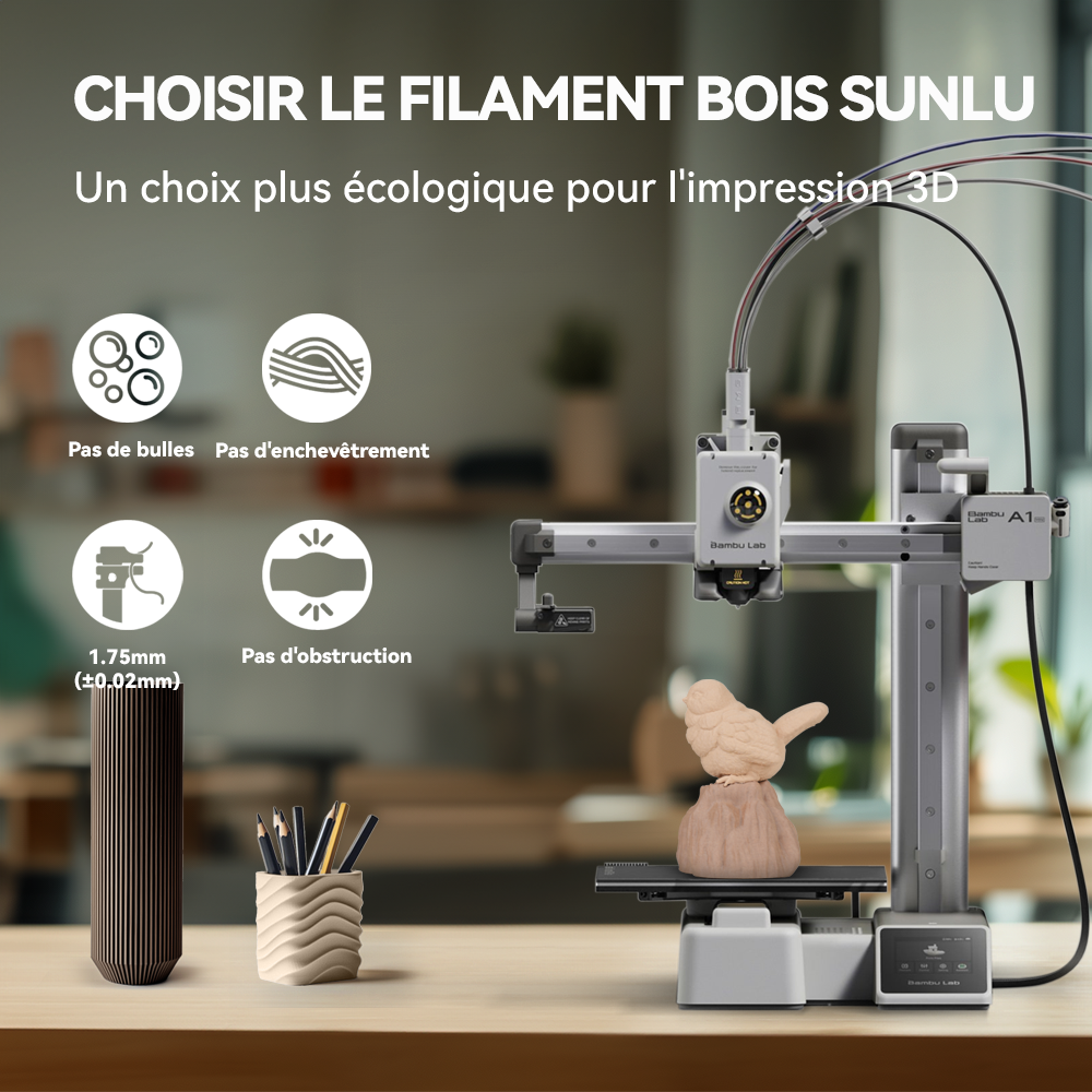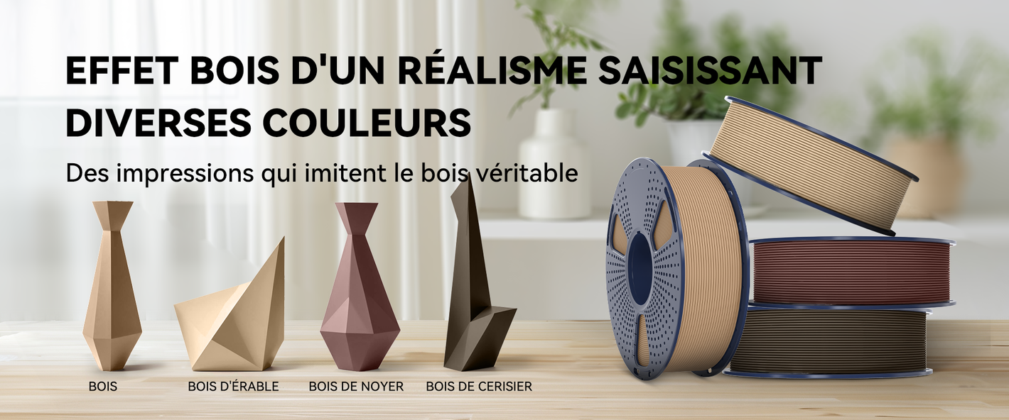 [Texture bois] Découvrez une texture boisée plus prononcée et une impression plus rapide avec le filament PLA bois amélioré.
