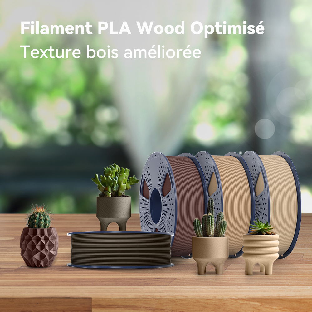 [MOQ : 3 Rouleaux] Optimized Wood PLA Filament 1KG, Bois Optimisé pour Imprimante 3D 1KG, Texture Bois Optimisée et Améliorée