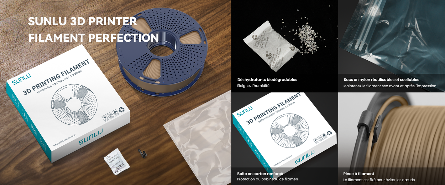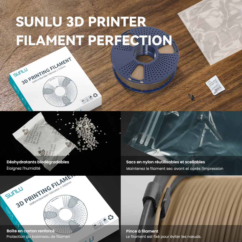 Pour stocker le filament PLA et le filament PLA+, il est recommandé de les stocker dans un endroit sec et frais, à l'abri de la lumière directe du soleil et de l'humidité.