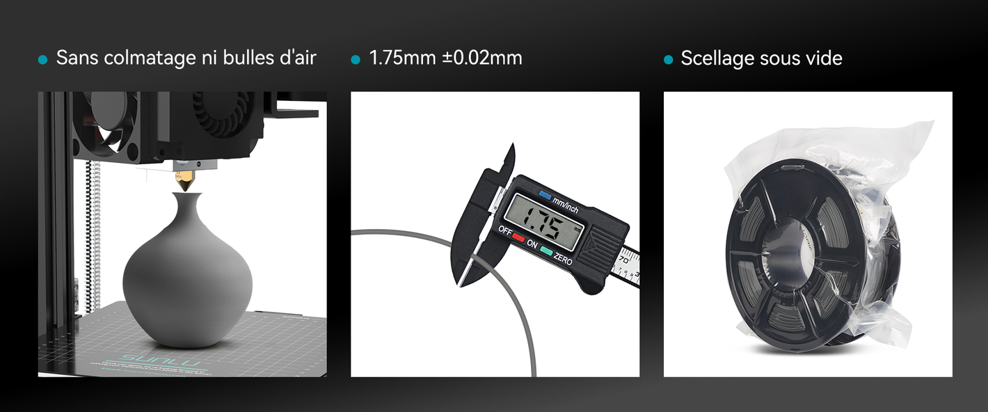 La qualité d'impression sera affectée si le PLA est humide. Veuillez vous assurer que le filament est résistant à l'humidité ou utilisez une boîte sèche pour sécher le filament.