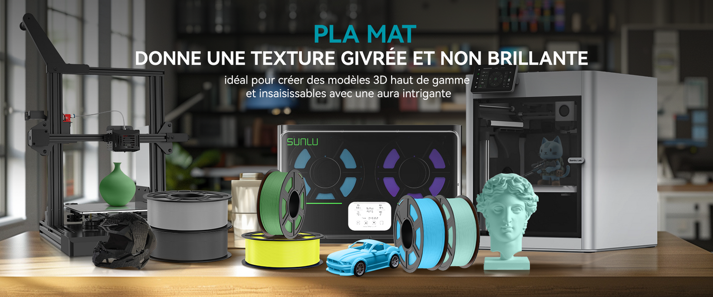 【Fantastiqueet lisse finition mate】La finition du filament PLA mat de SUNLU est formidable et aide vraiment à cacher les lignes de couche, faisant ressortir d'autres détails de l'impression Imprime lisse et a une belle finition mate.SUNLU beau filament PLA mat est obtenu sans compromettre l'adhérence du lit et de la couche, ce qui entraîne de belles pièces de filament PLA assez solide.Presque métallique finition et douce finition lisse.