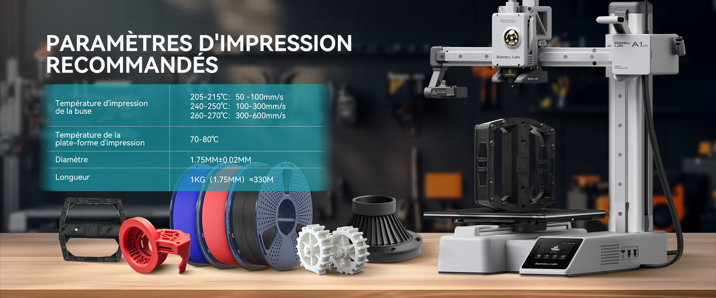 [Finition mate unique] Ce filament offre une finition mate élégante qui minimise les reflets et améliore l'attrait visuel, créant des résultats de qualité professionnelle avec une texture douce et élégante. Parfait pour les impressions fonctionnelles et esthétiques.