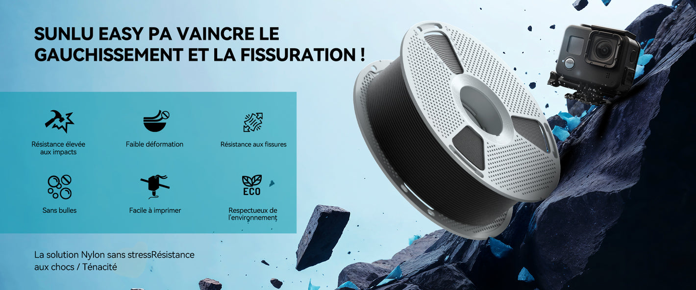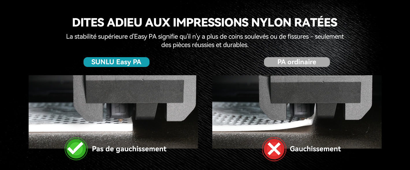 Fatigué des problèmes récurrents liés aux filaments PA standard : craquelures frustrantes, déformations tenaces et sensibilité constante à l'humidité qui ruinent vos impressions et votre filament ? SUNLU Easy PA est la solution technique que vous attendiez !