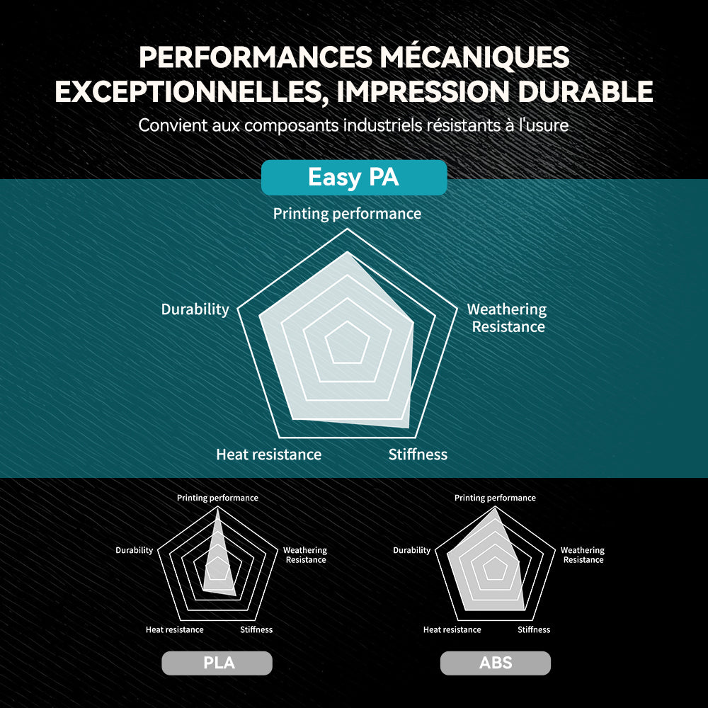 [Anti-humidité, imprimez en toute confiance] : Dites adieu aux bobines abîmées ! Easy PA est livré sous vide avec dessiccant et présente une résistance améliorée à l'humidité ambiante pendant l'impression et le stockage. Passez moins de temps à déshydrater et plus de temps à imprimer des pièces solides et sans bulles.