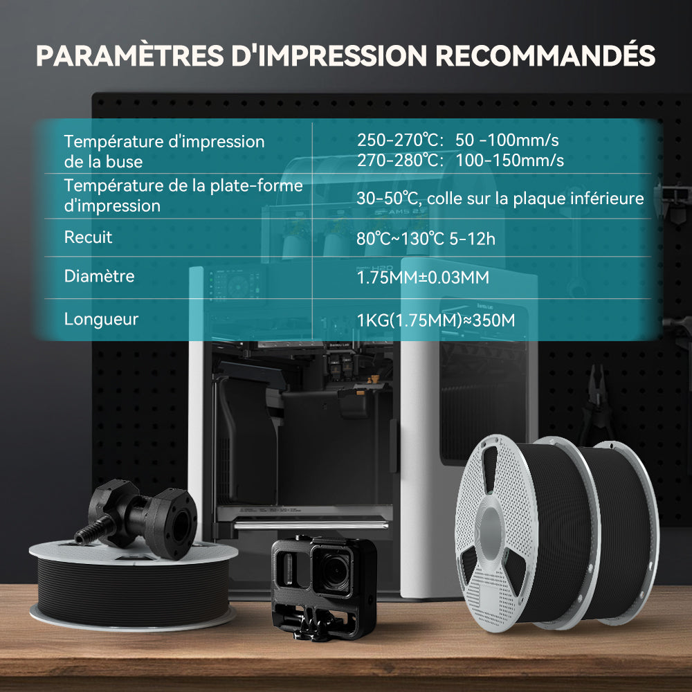 [Résistance aux chocs et robustesse imbattables] : Créez des pièces exceptionnellement solides et durables avec le filament SUNLU Easy PA. Conçu à partir de copolymère PA6/66, il offre une résistance mécanique exceptionnelle et une résistance aux chocs supérieure, rendant vos impressions remarquablement robustes, résistantes aux chutes et conçues pour durer.