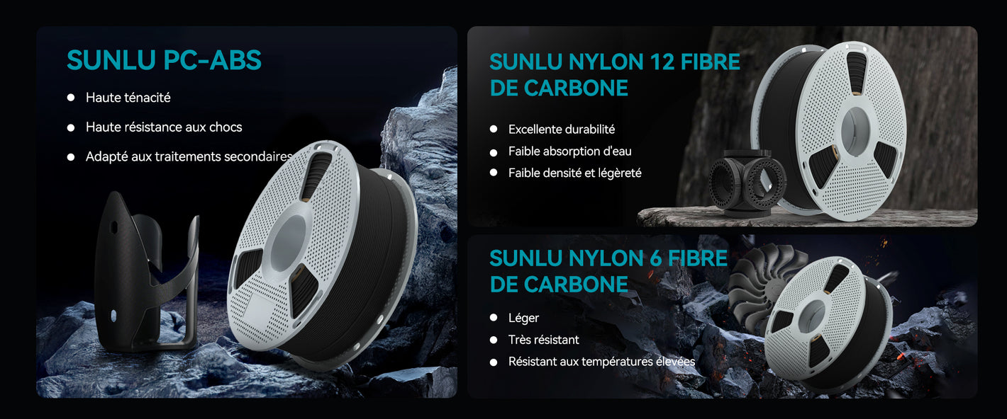 Conçu avec un renfort en fibre de carbone, le PA12-CF de SUNLU résiste à des températures allant jusqu'à 176°C, ce qui garantit sa stabilité dans des environnements exigeants tels que les applications automobiles ou aérospatiales. Optimisé pour l'impression à 260-280°C avec un lit chauffé à 50-70°C (utiliser de l'adhésif pour l'adhérence), il offre des performances fiables même sous des contraintes thermiques extrêmes.