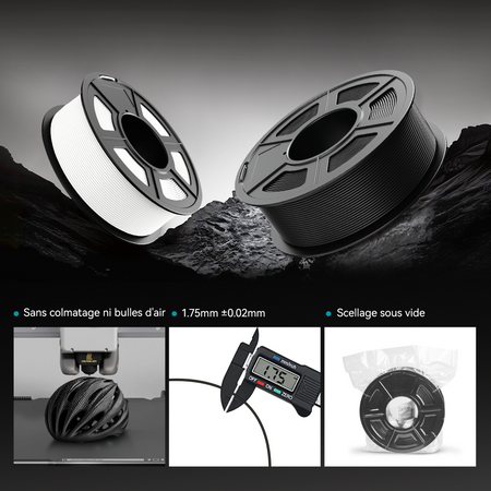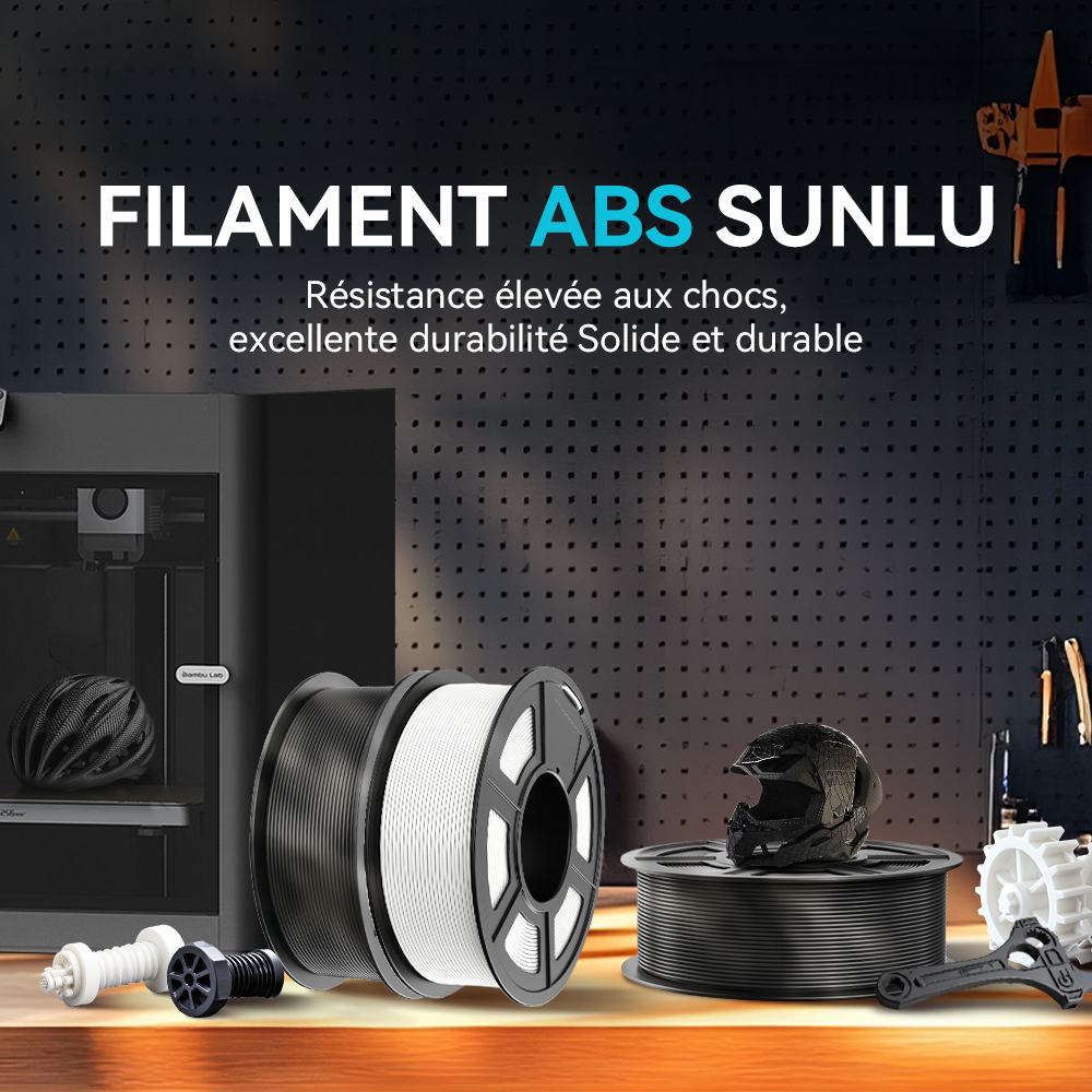 Le filament 3D ABS de SUNLU est un type de filament solide et durable, idéal pour l'impression d'articles durables ou de pièces fonctionnelles qui nécessitent une plus grande résistance à la chaleur.