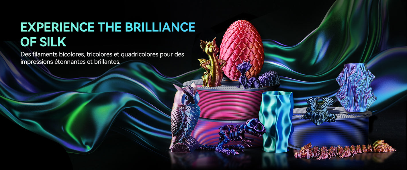 [MOQ : 3 Rouleaux] Silk Multicolore (Bicolore, Tricolore). PLA+ Soie Unicolore Filament 1KG