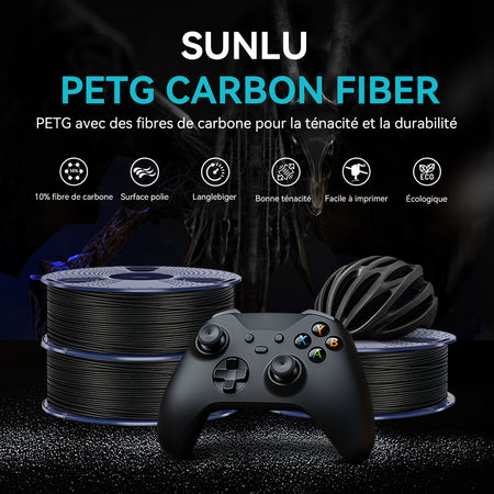 [10% Carbon Fiber Reinforced] SUNLU PETG-CF filament is infused with 10% carbon fiber, providing exceptional strength and stiffness. Ideal for industrial applications such as drone frames, tools, automotive components, and structural parts.