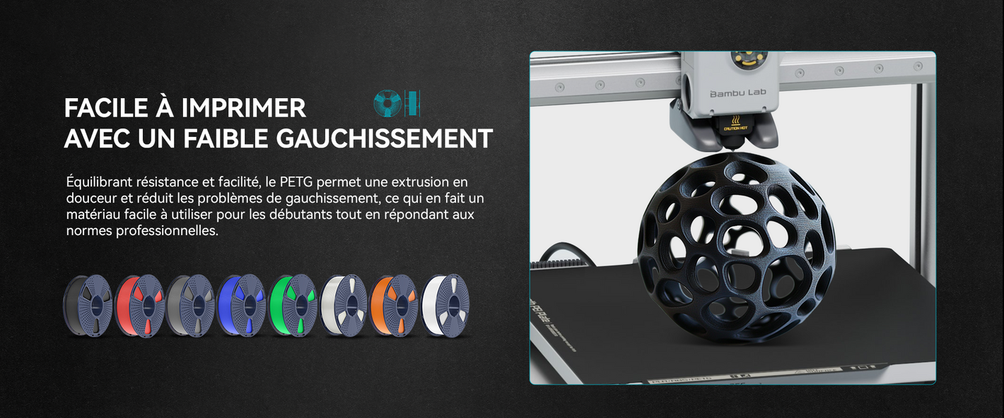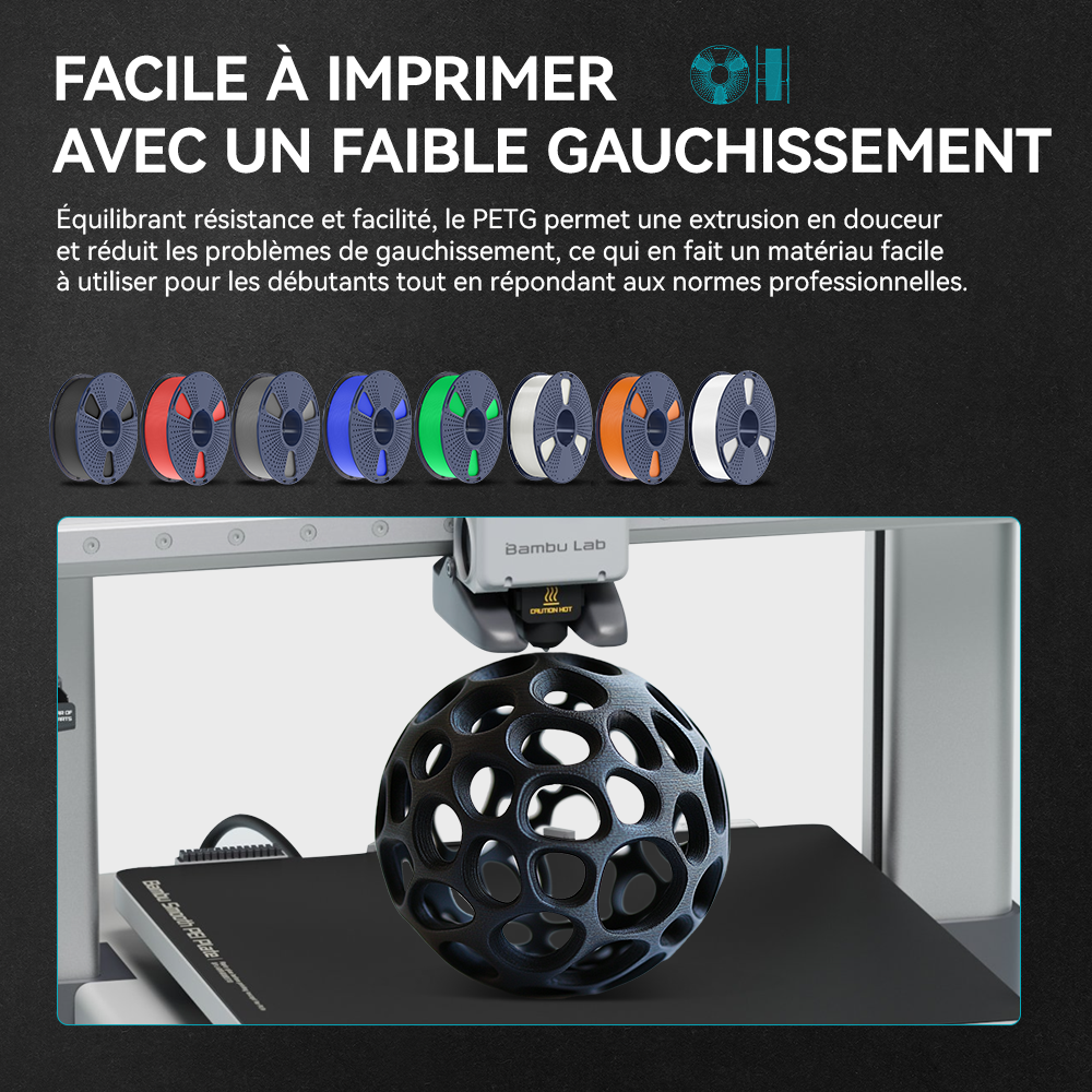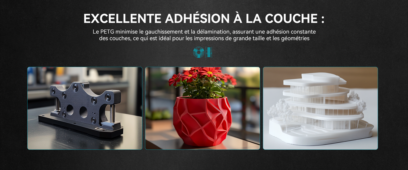 [Excellente adhérence des couches] Le filament PETG offre une excellente adhérence des couches, réduisant les risques de déformation et garantissant des impressions lisses et solides avec une grande intégrité structurelle.