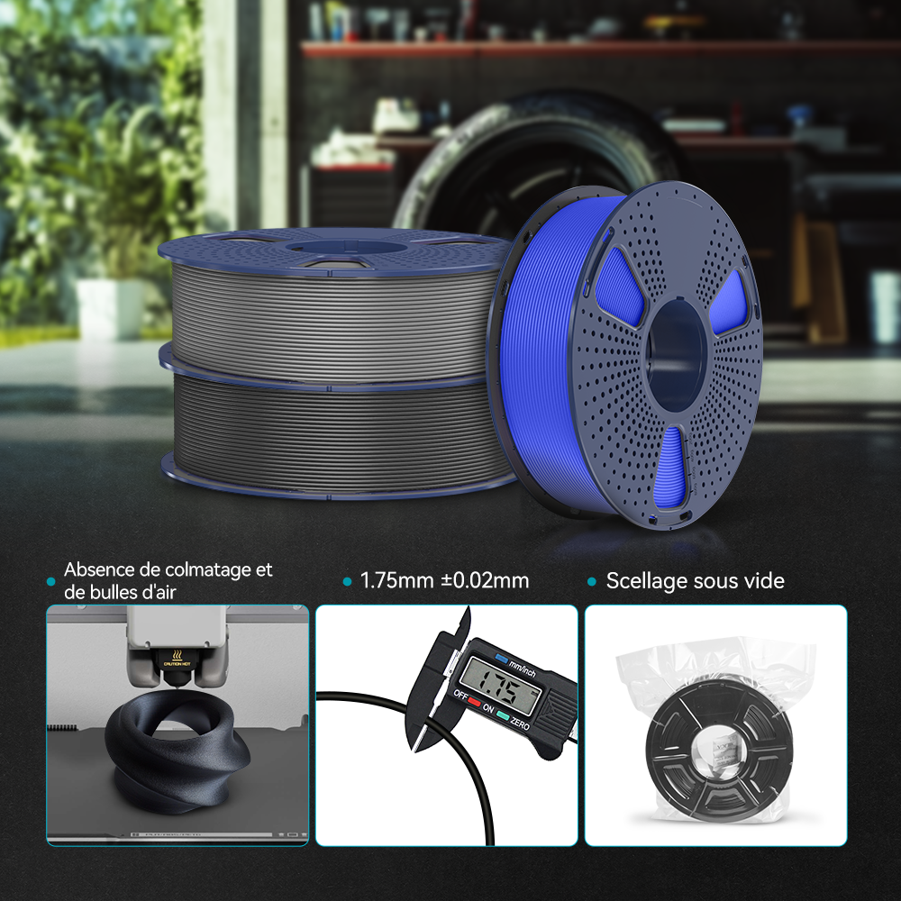 Pour stocker le filament PLA et le filament PLA+, il est recommandé de les stocker dans un endroit sec et frais, à l'abri de la lumière directe du soleil et de l'humidité.