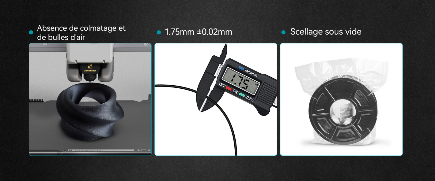 La qualité d'impression sera affectée si le PLA est humide. Veuillez vous assurer que le filament est résistant à l'humidité ou utilisez une boîte sèche pour sécher le filament.