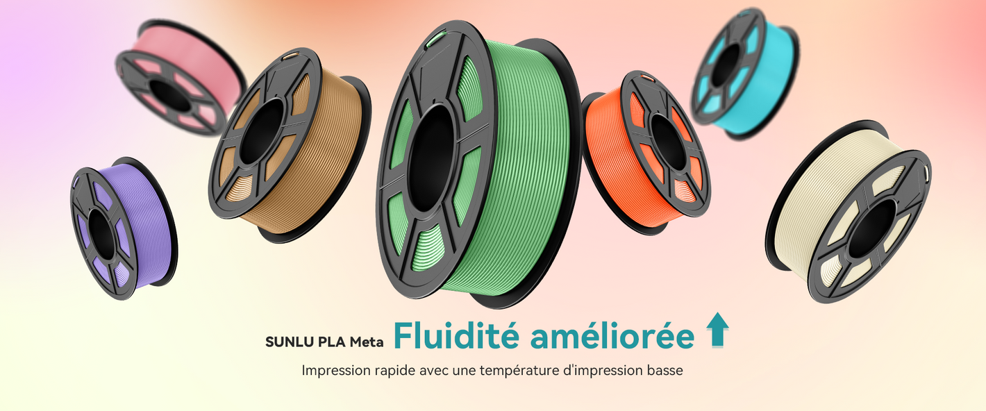 Le PLA est le matériau d’impression 3D le plus couramment utilisé, il est peu coûteux et adapté aux débutants avec des couleurs riches. Le PLA Meta est une version améliorée du PLA, avec une température d'impression plus basse, une meilleure ténacité et des couleurs plus douces.