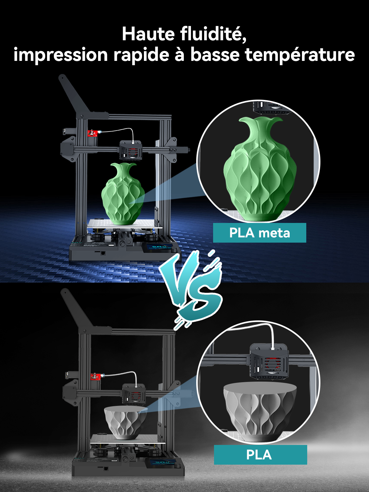 【High Speed Printing with Low temp】SUNLU 1.75mm PLA Meta 3D printer filament(± 0.02mm Tolerance)smooth squeeze. PLA Meta filament is 1.5 times more fluid than regular PLA. Minimum tolerance and low warping to ensure consistent feeding and fast prints, say goodbye to clogging.