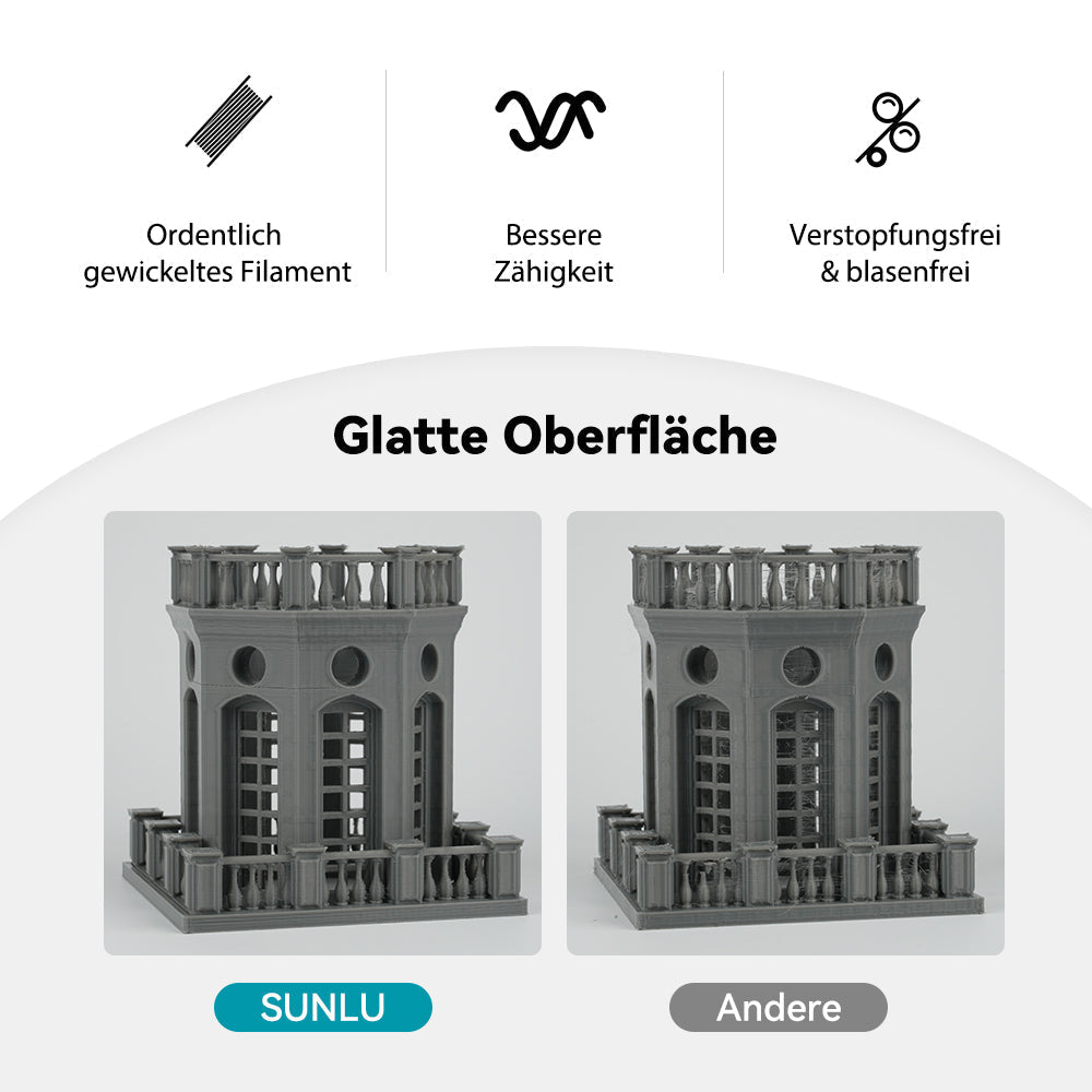 【1.75 mm de précision du filament PLA】SUNLU 3D printer filament dimensional Accuracy +/- 0.02mm. Le filament SUNLU a une large compatibilité en raison de la faible erreur de diamètre, ce qui le rend adapté à presque toutes les imprimantes 3D FDM de 1,75 mm.