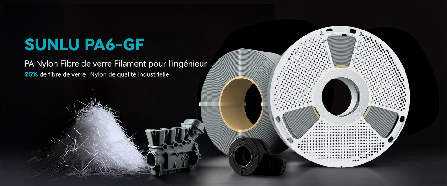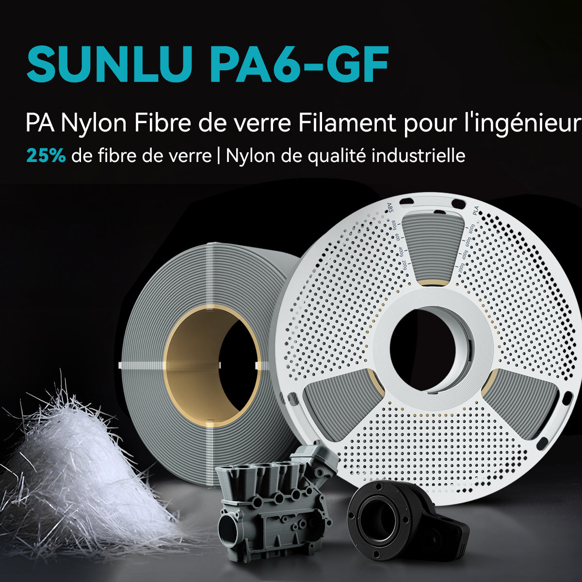 Nnylon-6 renforcé de fibres de verre (PA6-GF) Filament 1KG, PA6 avec 25 % de fibres de verre, résistance aux températures élevées jusqu'à 417 °F (214 °C)
