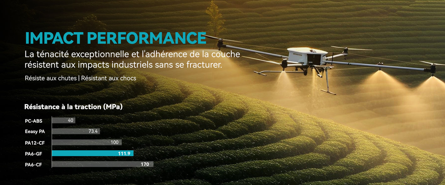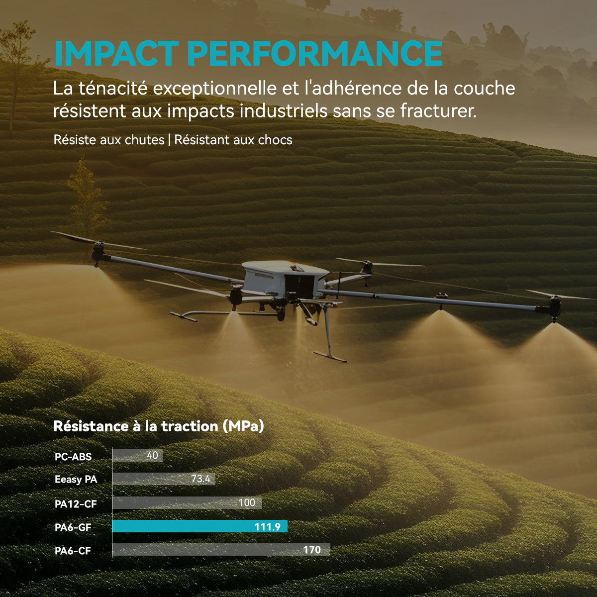 [Rigidité et résistance inégalées] Offre des propriétés mécaniques exceptionnelles avec une résistance supérieure aux chocs et aux chutes. L'adhérence exceptionnelle des couches garantit que les impressions résistent à une manipulation rude sans se fracturer – conçu pour une utilisation industrielle intensive.