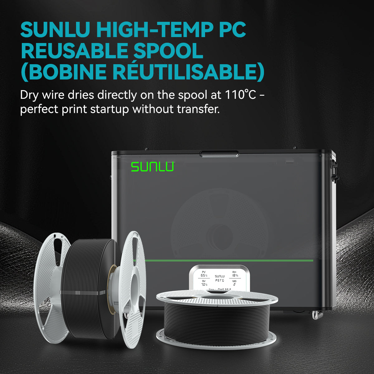 [Système de bobine technique] Comprend une bobine réutilisable et résistante à la chaleur, conçue pour un séchage direct. Résiste à des températures de séchage allant jusqu'à 230 °F (110 °C) pour garantir des performances optimales du filament directement sur la bobine.