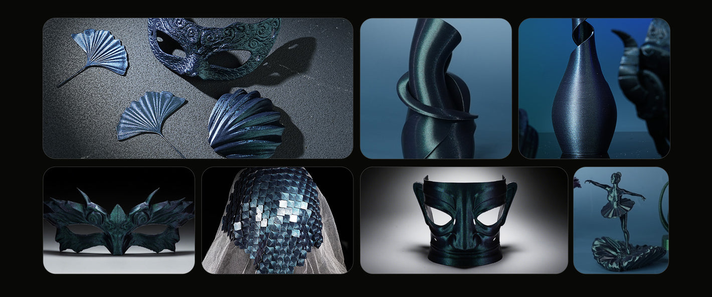 Des ornements décoratifs et bijoux aux accessoires de cosplay, pièces de mode et sculptures artistiques, le PLA Galaxy ouvre un monde de possibilités créatives. Sa finition captivante le rend parfait pour des pièces d’exposition, des cadeaux ou tout projet destiné à se démarquer. Que vous soyez amateur ou professionnel, ce filament élève vos créations à un niveau supérieur.