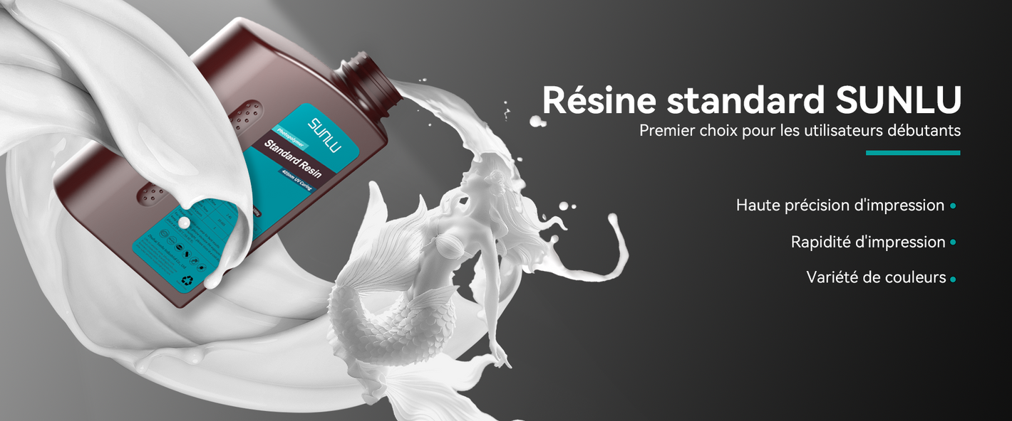 [Résine standard SUNLU] La résine standard SUNLU durcit rapidement après exposition à une lumière UV de 395 à 405 nm émise par une imprimante à résine (ou une machine de durcissement de résine). Elle convient à la plupart des imprimantes 3D à résine 2K/4K/6K/8K (LCD/DLP/SLA), offrant des résultats efficaces et fiables.