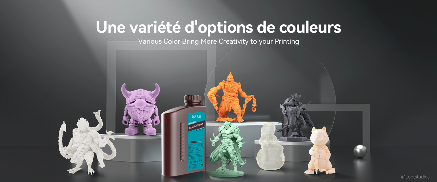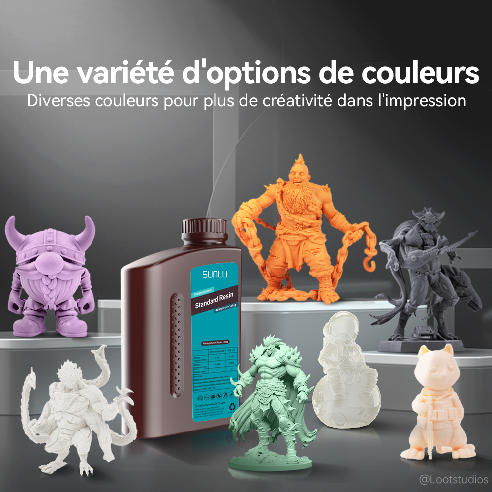 [Diverses couleurs pour l'impression] La résine standard SUNLU offre une vaste gamme de couleurs, notamment des couleurs unies, des couleurs claires et des couleurs macaron. SUNLU donne vie à votre imagination et donne vie à vos créations grâce à notre sélection de couleurs vives et étendues.