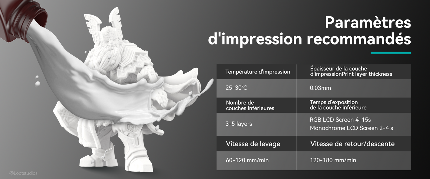 4. Sensibilité à la lumière : Imprimez dans une chambre noire ou couvrez l'imprimante, car la résine est sensible à la lumière.